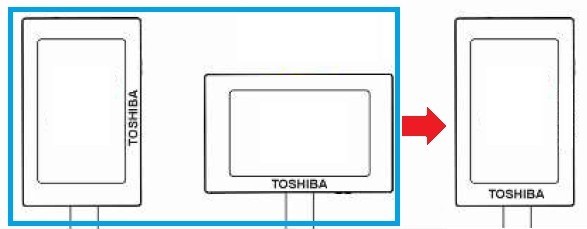 The TOSHIBA logos are going to be printed on the touch display with around 30% transparency in positions that support both Portrait and Landscape orientations. If the LED (backlight of the logo) is not turned on, we are not able to see any logo on the display. There are LEDs under the 30% transparent logos. When the LED is turned on, we can see the logo clearly. We can control which LED to be turned on in different mounting orientations. (such as leveraging the G sensor implemented in the current All in One system units)