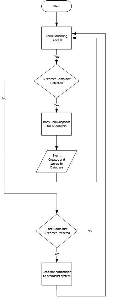 Such as the body camera will be attached to every cashier or service associate. Once he/she receives any complaint, the body camera will enter the complaint item into the system directly (through the AI technology) and also record the facial information of the customer.