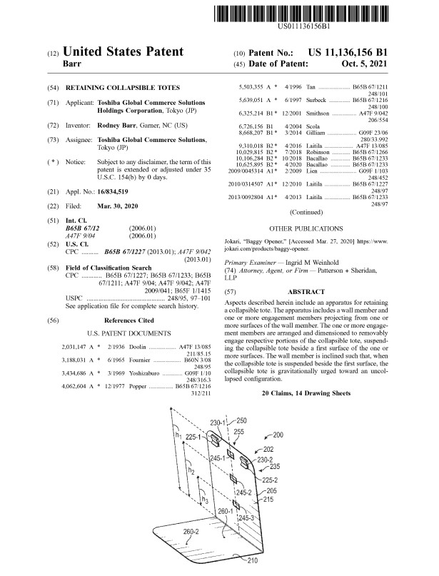 Aspects described herein include an apparatus for retaining a collapsible tote. The apparatus includes a wall member and one or more engagement members projecting from one or more surfaces of the wall member. The one or more engagement members are arranged and dimensioned to removably engage respective portions of the collapsible tote, suspending the collapsible tote beside a first surface of the one or more surfaces. The wall member is inclined such that, when the collapsible tote is suspended beside the first surface, the collapsible tote is gravitationally urged toward an uncollapsed configuration.