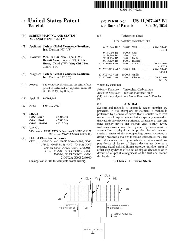 Systems and methods of automatic screen mapping are presented. In one exemplary embodiment, a method is performed by a controller device that is coupled to at least one of a set of display devices that are spatially arranged so that each display device is positioned adjacent to at least one other display device and wherein each display device includes a screen structure having a set of presence sensitive sensors. Each display device is operable, for each presence sensitive sensor of the corresponding screen structure, to detect a presence signal and to radiate a presence signal. The method includes receiving an indication that a second display device of the set of display devices has detected a presence signal radiated from a presence sensitive sensor of a first display device of the set of display devices so as to determine a spatial arrangement of the first and second display devices.